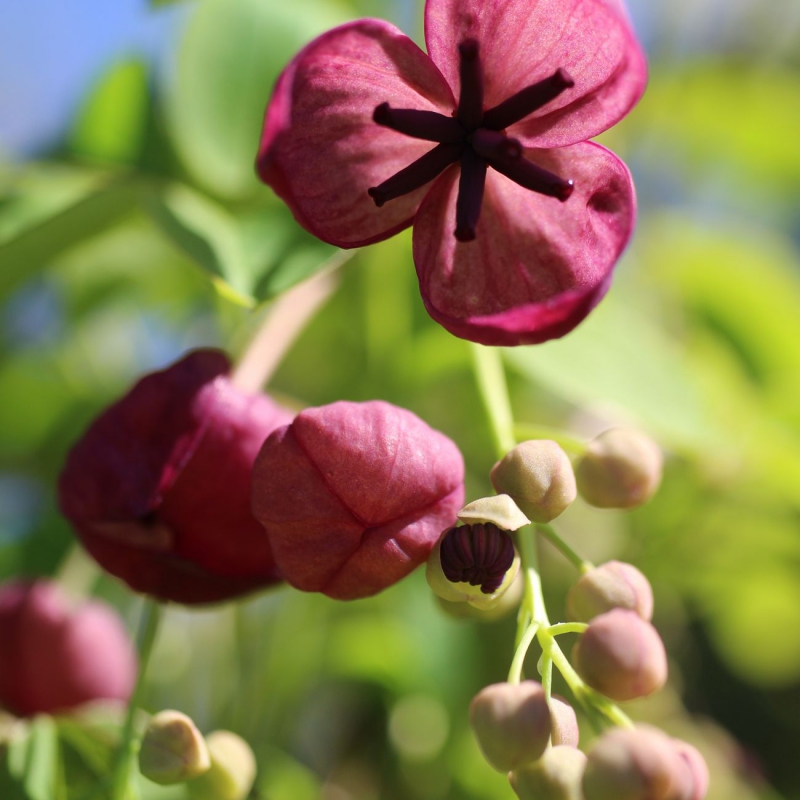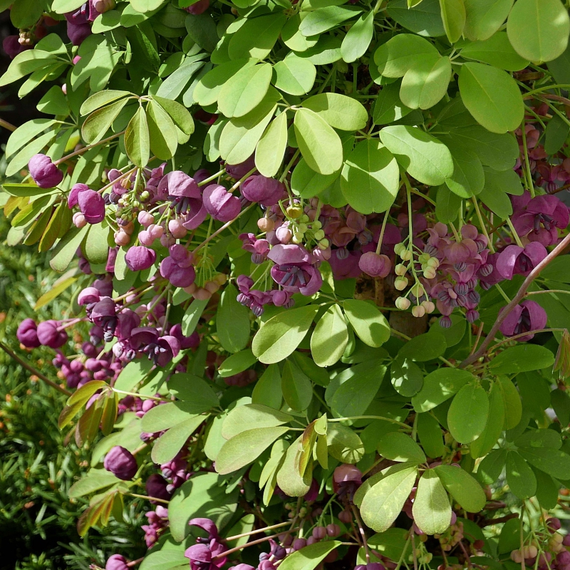 Poloopadavá popínavá rostlina vhodná na stěny, pergoly. Snáší slunce i polostín a také vlhkost. Roste jako mnoho jiných popínavých rostlin do výšky 4-6 m, roční přírůstek je 1,5-2 m. Má dlanitě složené listy, shora tmavší, zespodu světleji zelené. Květy jsou drobné, purpurově hnědé, uspořádané v hroznech a intenzivně voní. Jedlé plody mají zelenofialovou barvu. V našich podmínkách se bohužel tvoří jen sporadicky.