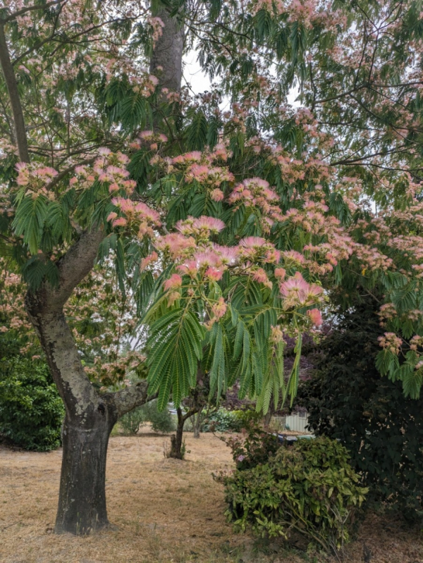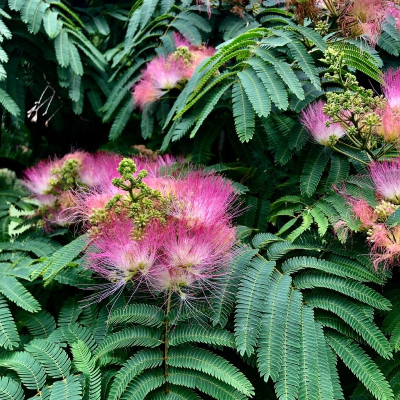 Velmi jemné kapradinové listy jsou hlavní doménou tohoto stromu připomínajícího žížalu. Listy se na noc a za deště zavírají. Tmavě růžové květy s dlouhými tyčinkami rozkvétají koncem léta. Vyberte středně bohatou půdu s dostatečnou propustností. Albizie má ráda slunné, teplé a chráněné stanoviště. Nikdy nesmí stát delší dobu ve vodě. V zimě potřebuje být dobře zastíněná.