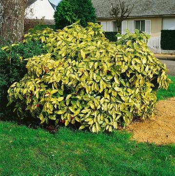 Sulphurea Marginata je skutečně jedinečná odrůda japonské aukuby. Není tak zlatá nebo žlutá jako většina ostatních, a přestože její listy nesou z velké části žlutý nádech, působí i přes svou obrovskou velikost (až 20x10 cm) jemněji a elegantněji. Jsou stálezelené, velmi lesklé, uprostřed středně zelené a na okrajích přecházející do světle zelené, žluté a dokonce krémové nebo banánově žluté. Sulphurea marginata roste pomalu nebo mírně (20-25 cm za rok) a tvoří hustý keř stejné výšky a šířky.