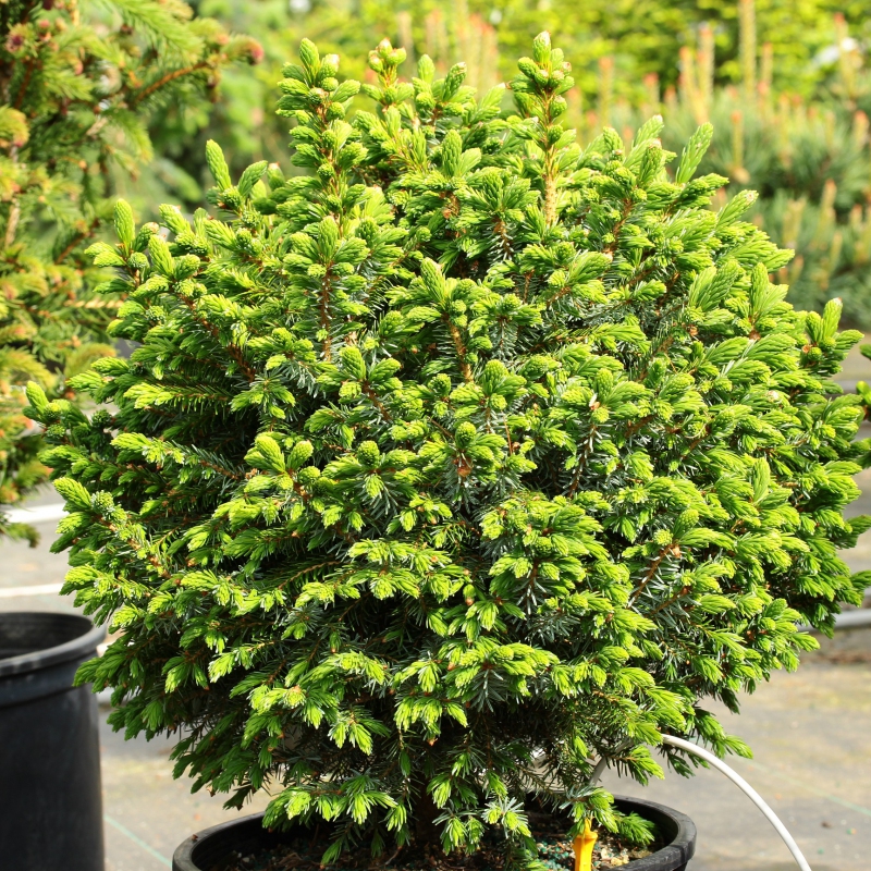 Stejně jako většina jehličnanů má i balkánský smrk svůj hustý, kompaktní nízký kultivar zvaný Nana. Jedná se o hustě větvený, pomalu rostoucí, zakrslý stálezelený jehličnan kulovitého nebo široce kuželovitého tvaru. Ročně přirůstá asi 7-15 cm a v dospělosti dosahuje výšky 1,5-2,5.