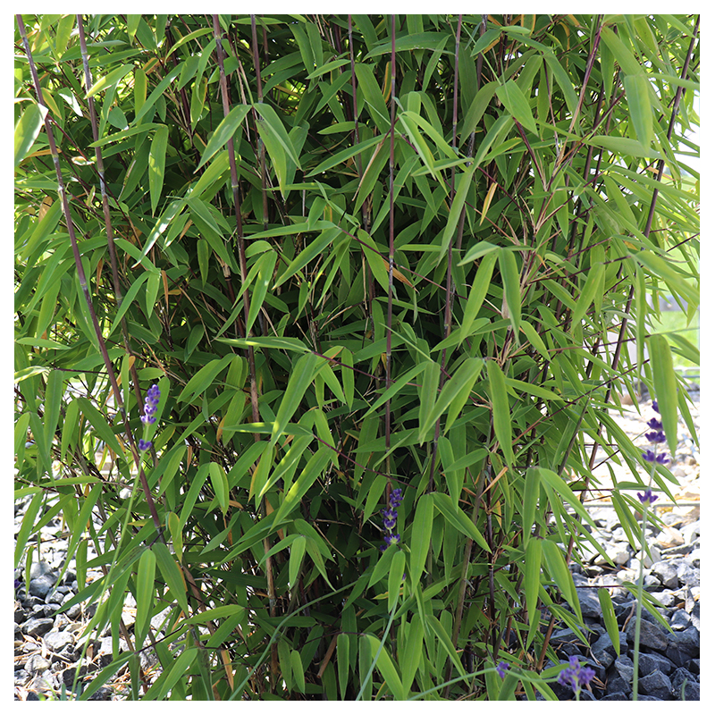 Bambus lesklý Volcano je silný, stálezelený bambus, který na první pohled zaujme jemnými, červenofialovými až černými stonky, které krásně kontrastují se štíhlými, jasně zelenými listy dlouhými asi 9 cm. Tento malý zahradní bambus dorůstá po 10 letech výšky jen asi 2 m.