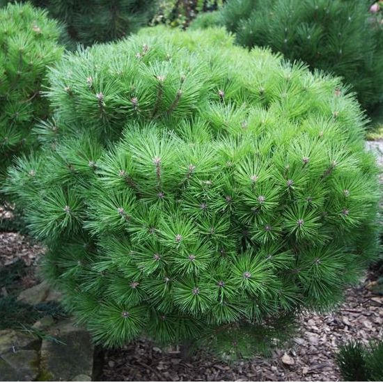 Velmi žádaná odrůda zakrslé borovice. Roste pravidelně a má kompaktní kulovitou korunu. Ideální do skalek a smíšených výsadeb jako dominantní rostlina.