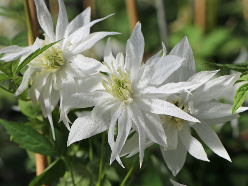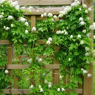 Clematis Albina Plena je výjimečný plamének se zvonkovitým plným květem. Dosahuje až 12 cm v průměru a co potěší - jedná se o remontantní, tedy opakovaně kvetoucí plamének. Jednotlivé květy jsou krémově bílé, tyčinky jsou žluté. Kvete v květnu a později koncem léta. Listy jsou sytě zelené a dekorativní, velké 18 až 20 cm.