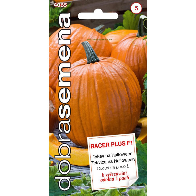 RACER PLUS F1 je nová, vylepšená odrůda oblíbené odrůdy RACER F1. Vyznačuje se vysokou odolností vůči padlí. Plody jsou kulaté, pruhované, sytě oranžové, o hmotnosti 6-8 kg. Pravidelný kulatý tvar a silná, vysoce dekorativní stopka jsou silnými stránkami této odrůdy. Tolerance k padlí (v názvu označovaná jako PMT) je dalším významným kladem nového hybridu.
