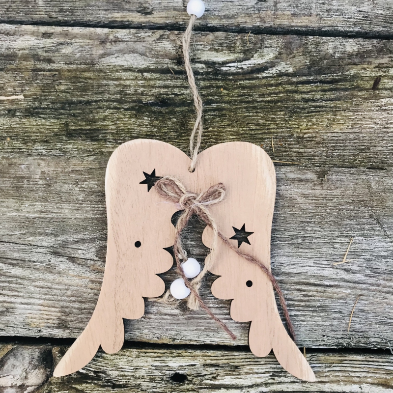 Dřevěná dekorace s andělem na zavěšení s koblihami
