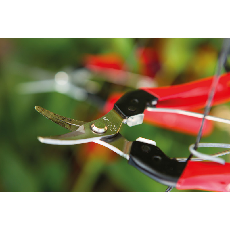 Kompaktní a velmi snadno ovladatelné nůžky jsou určeny pro sklizňové práce. Šikmá stříhací hlava umožňuje pohodlné a bezpečné stříhání stonků ovoce, květin a bylin. Měkké polyuretanové tlumiče snižují svalovou námahu při natahování a šetří vaše ruce. Čepel z uhlíkové oceli je poniklovaná pro ochranu proti korozi a pro hladkou práci hlavy.