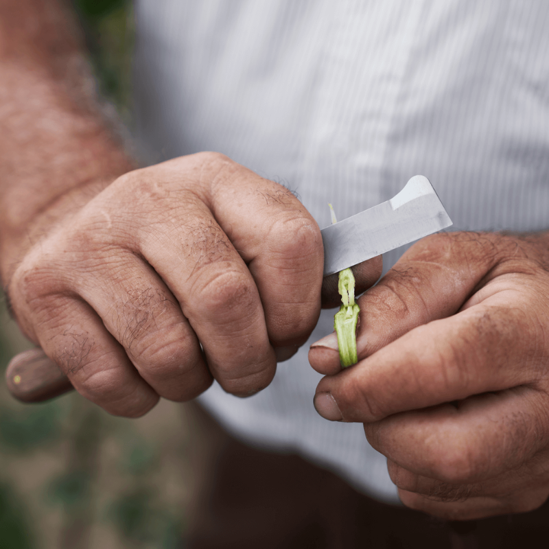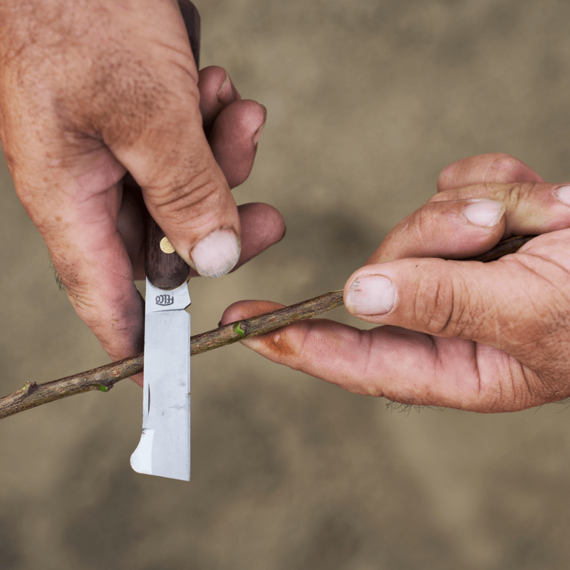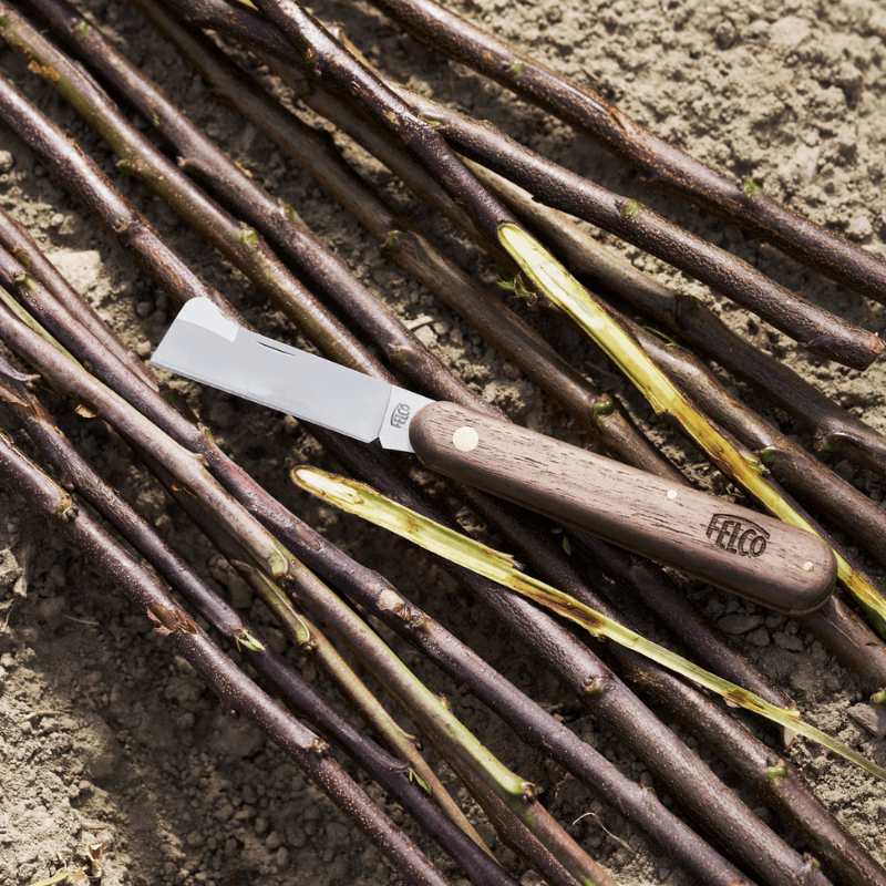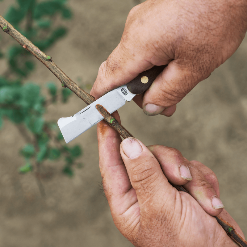 Premiový profesionální nůž na roubování a štěpování s vytahovačem kůry na horní straně čepele. Vysoce kvalitní čepel z uhlíkové oceli pro čistý řez a bezkonkurenční přesnost při práci. Rukojeť z ořechového dřeva. Vnitřní mosazné obložení eliminuje a chrání čepel před poškozením.