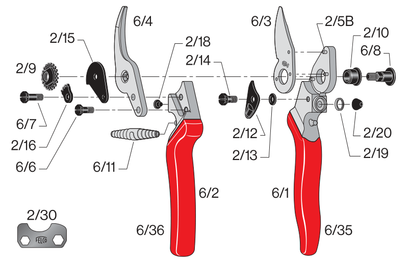 Nůžky FELCO 6 vhodné pro malé ruce, stříhají do průměru 20 mm. Střih nůžek je čistý a přesný. Na pohodlnou, lehkou a pevnou rukojeť se vztahuje doživotní záruka. Čistý a dokonalý střih zajišťuje čepel a protiostří z kvalitní kalené oceli. Součástí čepele je řezač drátu a speciální drážky pro odvod šťávy z řezu. Pro snížení síly vyvíjené při stříhání a prevenci zánětu šlach jsou stříhací hlavy nůžek zkosené. Nůžky FELCO 6 najdou uplatnění ve vinařství, zahradnictví a školkách.