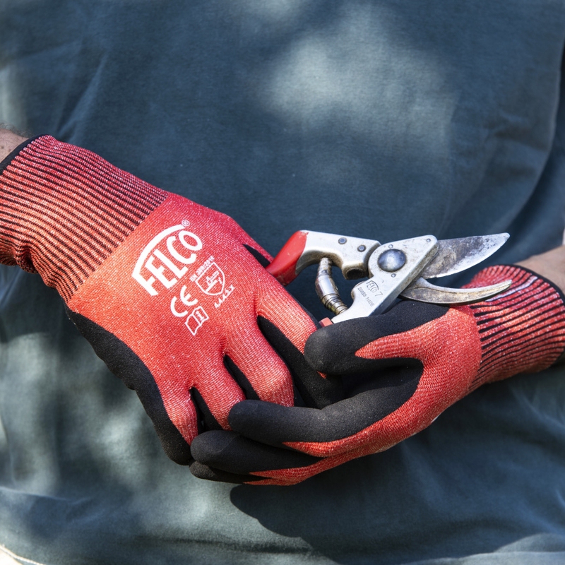 Rukavice FELCO 701 byly vyvinuty s ohledem na potřeby profesionálních pracovníků i hobby uživatelů. Tento model vyrobený z HPPE úpletu je lehký a ergonomický a zaručuje vysokou odolnost proti proříznutí. Prsty a dlaň potažené nitrilem zajišťují vynikající úchop a odolnost. Vhodné pro vinaře, krajináře a ovocnáře.