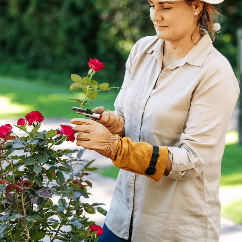 Kožené rukavice FELCO 705 pro všechny pěstitele a milovníky růží. Rukavice jsou navrženy tak, aby při práci s růžemi chránily nejen dlaně, ale i předloktí. Jsou vhodné i pro práci s jinými rostlinami, které mají trny (např. maliny, ostružiny, rakytník...). Měkká a velmi příjemná hovězí kůže je pružná při pohybu a zároveň velmi odolná při ochraně rukou před trny růží. Předloktí rukavic je vyrobeno z hovězí velurové kůže a v horní části je ošetřeno sponou na utažení.
