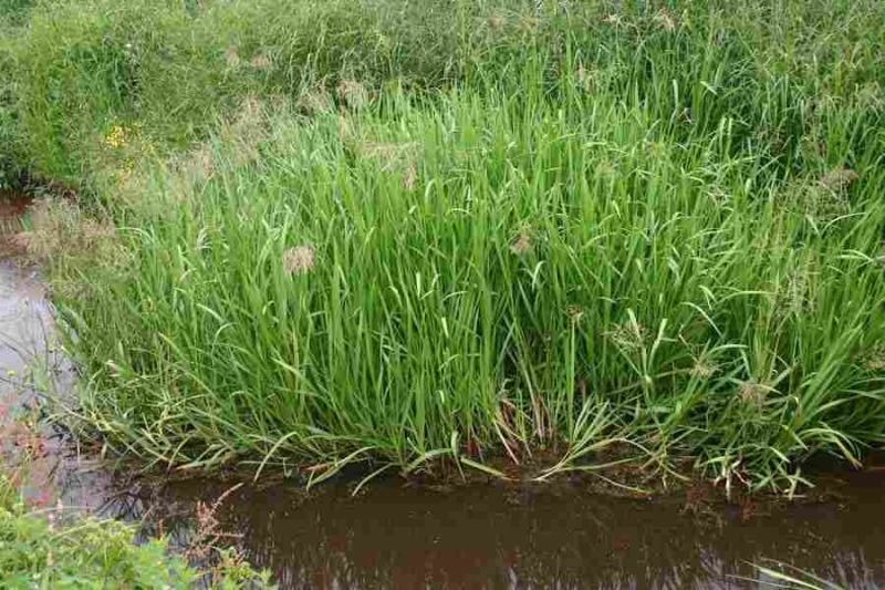 Tráva která je vhodná pro pěstování na březích vod. Dorůstá do výšky asi 80 cm a vytváří plazivé dlouhé výhonky. Listy jsou zbarveny zeleně. Čepel je nahoře hladká a dole drsná. Kvete žlutozelenými latami, které jsou 20-40 cm dlouhé. Pěkně doplňují břehy rybníků.