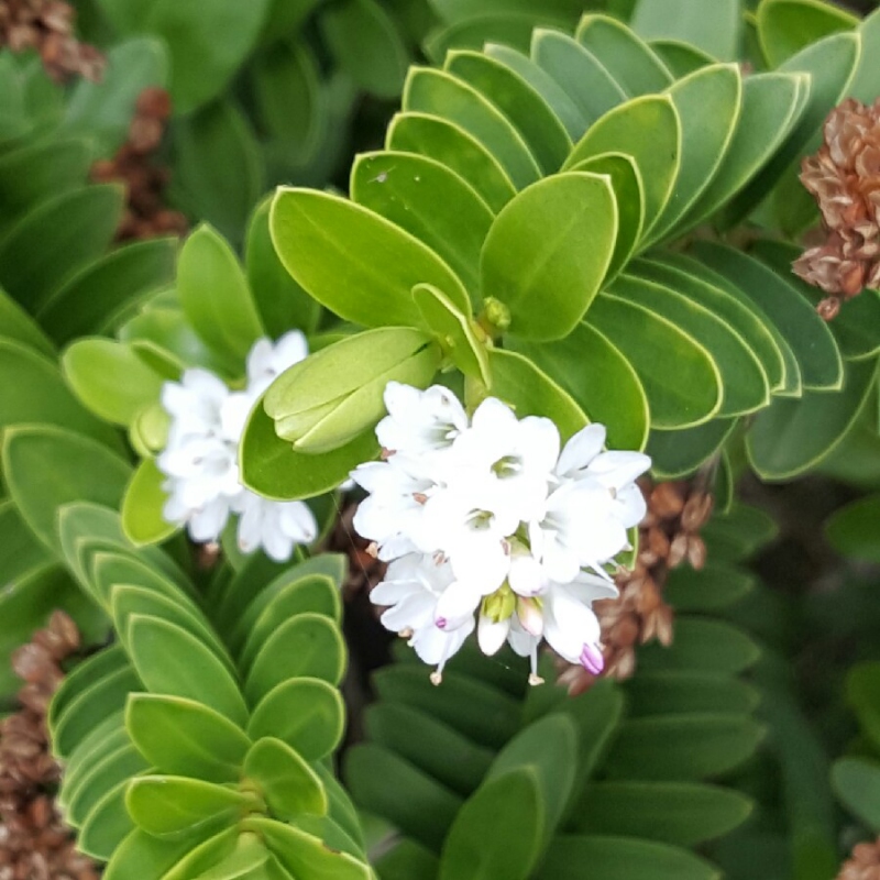 Hebe ´New Zealand Gold´ se vyznačuje zelenými drobnými listy, které hustě pokrývají všechny výhony. Zajímavá je tím, že si svou svěží zelenou barvu zachovává po celý rok. V létě kvete drobnými bílými květy.