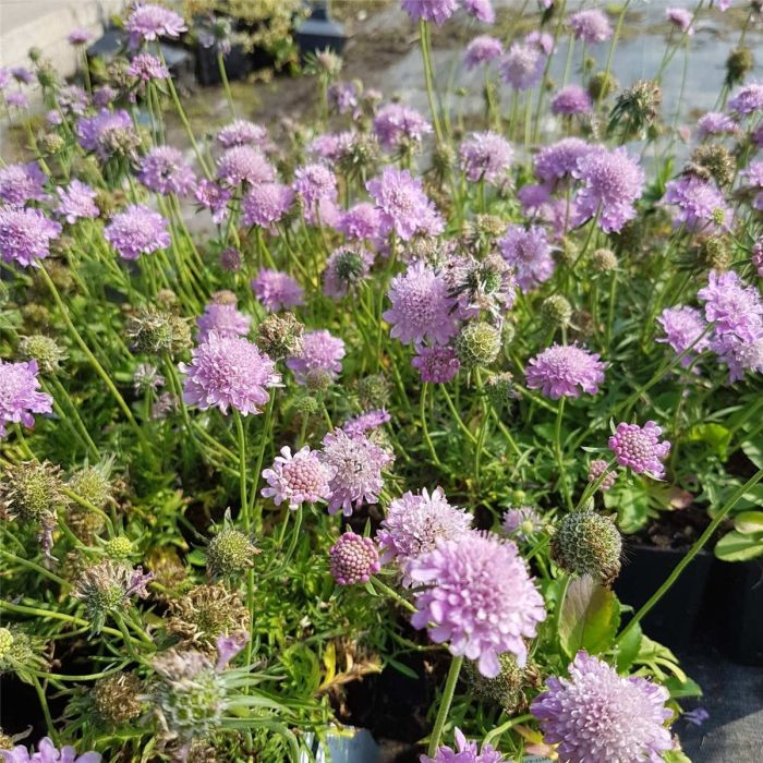 ´Pink Diamonds´ je kompaktní, nízko rostoucí trvalka. Vytváří růžové, polokulovité květy. Listy tvoří nízkou přízemní růžici a z nich se táhnou tenké stonky zakončené půvabnými květními hlávkami. Voňavé květy zdobí záhon až do začátku podzimu. Na zahradě jsou vynikajícím lákadlem pro včely a motýly.