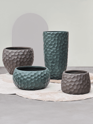 Květináč Baq z kolekce Tortuga upoutá pozornost díky jedinečnému čtvercovému vzoru, který je pro tuto řadu charakteristický. Květináč je vyroben z hlíny, inovativního materiálu tvořeného směsí skleněných vláken a hlíny. Díky tomu má květináč vzhled kamene a zároveň je výrazně lehčí. Díky žebrované struktuře a možnosti použití venku i v interiéru nabízí tento květináč všestrannost a estetiku. Je odolný proti mrazu, a proto může zůstat venku i během chladných období, aniž by se poškodil. Díky odolnosti proti UV záření je květináč chráněn před změnou barvy a poškozením způsobeným působením slunečního záření. Díky nehořlavosti je tento výrobek bezpečnou volbou i pro použití v interiéru. V praxi je květináč ve spodní části vybaven odtokovým otvorem, který umožňuje účinný odtok přebytečné vody.