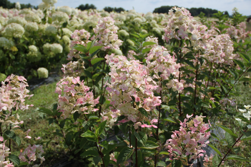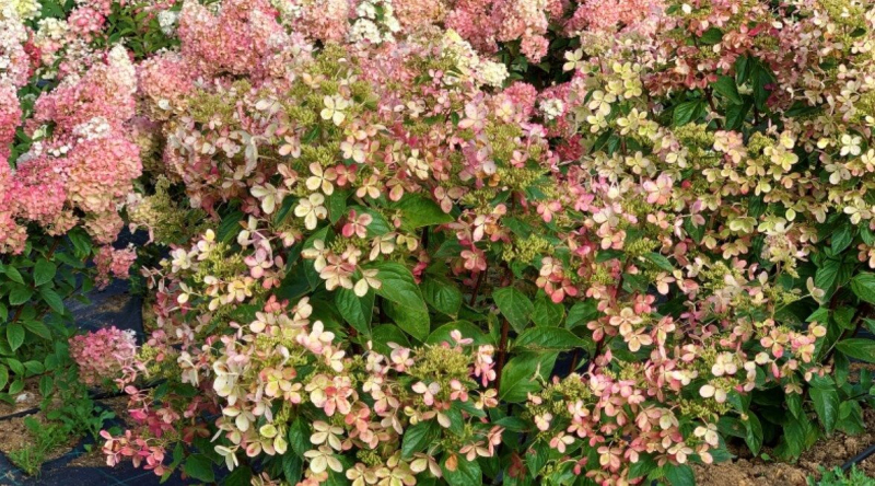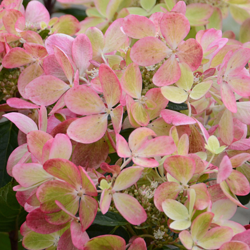 Květy hortenzie PASTELGREEN nabízejí harmonickou paletu odstínů zelené a růžové. Během kvetení se barvy postupně mění a prolínají, až na podzim získají sytější malinovou barvu.