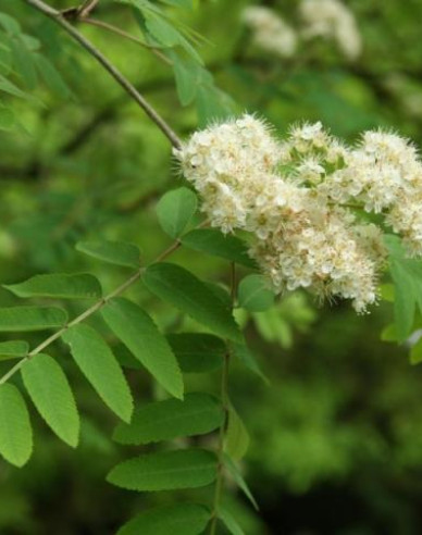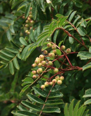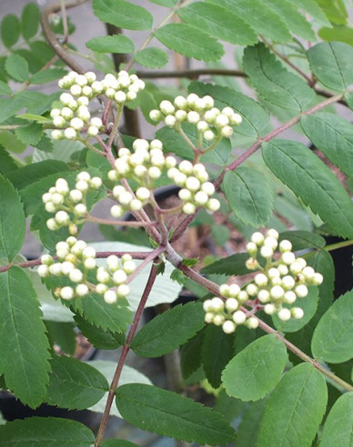 Druh jeřábu dorůstající výšky 4 m a šířky 2 m. Tento opadavý strom má střídavé, zvláštně zpeřené složené listy, jejichž olistění se na podzim zbarvuje do červena. Květenství je bílé, složené z drobných bílých kvítků, a kvete v květnu až červnu. Plody jsou bílé peckovice, které dozrávají během září. Strom preferuje slunné, polostinné stanoviště, je nenáročný na typ půdy a potřebuje pouze dobře propustný, živný a vlhký substrát. Je plně mrazuvzdorný a hodí se jako solitéra do zahrad či parků nebo do městských uličních stromořadí.