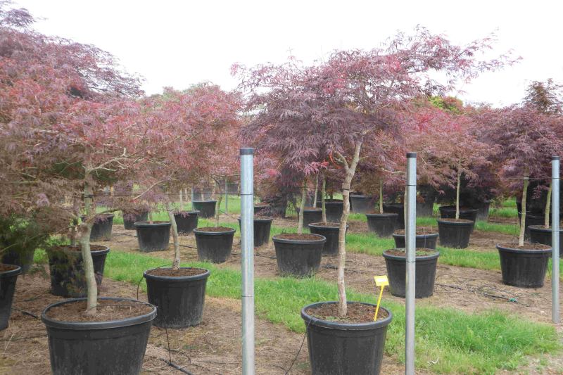 Jedná se o jednu z nejoblíbenějších odrůd. Poměrně rychle rostoucí, bujně rostoucí kultivar Garnet obvykle dorůstá do výšky 1,5 m, maximálně 2 m. Jasně červené, velmi jemné okvětní lístky postupně získávají sytě granátově červenou barvu. Tento javor potřebuje chráněné stanoviště před prudkým sluncem a pozdními mrazy. Lépe se mu daří v neutrální až kyselé půdě, ale snese i mírně vápenitou půdu.