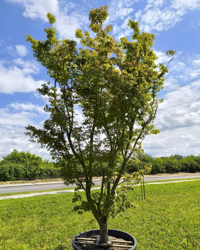 Acer Orange Dream>Pronikavý javor s malebnými dlanitě dělenými listy, které mění barvu během vegetačního období. Zpočátku jsou listy žlutooranžové a přibližně v polovině vegetačního období se stávají převážně zelenými. Nejkrásnější je v podzimních dnech, kdy se listy zbarvují do zlatavě oranžové barvy. Poutavý, barevný a v každém ročním období jiný! Javor dlanitolistý roste pomaleji do deštníkovitého tvaru, zpočátku do výšky 1,5-2 m, poté se koruna rozšiřuje (na 1,8-2 m).