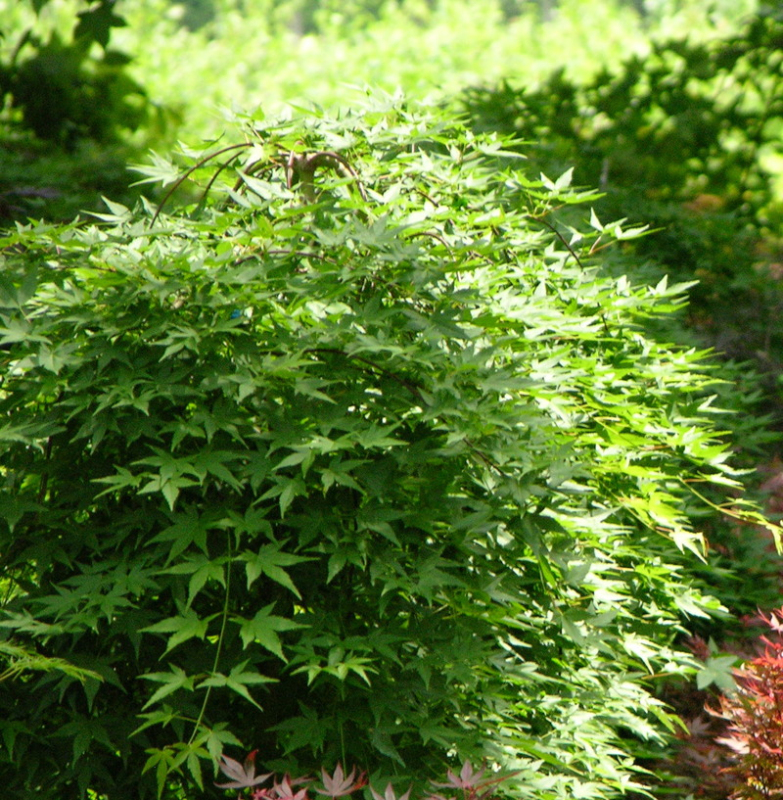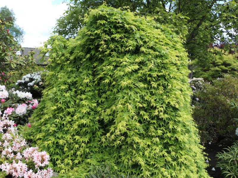 Javor ´RHYUSEN´ je jedinečný kultivar, jehož výhony přirozeně rostou směrem dolů a tvoří atraktivní zelený vodopád. Listy jsou na jaře a v létě světle zelené, na podzim se mění na žlutočervené.