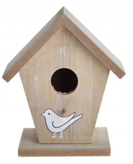 Budka je vyrobena z dřevovláknité desky/překližky o tloušťce přibližně 1 cm.