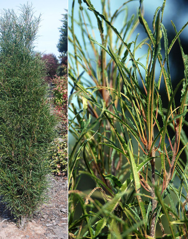 Hrušeň úzkolistá Fine Line je neobvyklý, sloupovitý, úzce rostoucí keř dorůstající do výšky 1,5-2 m. V případě, že se jedná o hrušeň úzkolistou, je možné, že se jedná o neobvyklý keř. Okrasné zelené úzké listy připomínají trávu a na podzim mění barvu na jasně žlutou. Není náročná, ale vyhovuje jí mírně kyselá, vlhká, na živiny bohatá půda. Je plně mrazuvzdorná.