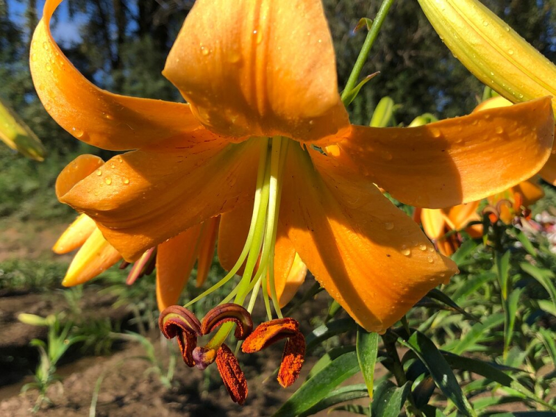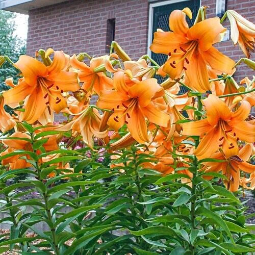 Lilie Orange Space a její nádherné květy mají krásnou dýňově oranžovou barvu s lehkým nádechem červené kolem hrdla. Okvětní lístky mají jemně stočené konce, které se špičkou stáčejí dozadu. Nápadné květy mají také hvězdicovitý vzor v zeleném hrdle. Dorůstají do výšky 140 cm.