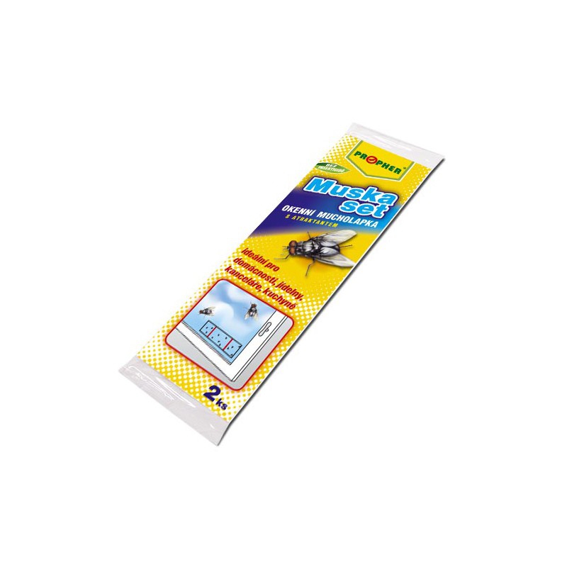 Estetická forma lákání létajícího hmyzu barevným potiskem. Vhodné pro použití na viditelných místech v kuchyni a všude tam, kde z estetických důvodů nechcete používat tradiční plácačky na mouchy. Můžete ji umístit na sklo, dlaždice, hrnce, do skladů ovoce apod. Účinně chytá mouchy, octové mušky a další létající hmyz. Speciální složení lepidla umožňuje jeho působení po dobu několika měsíců.