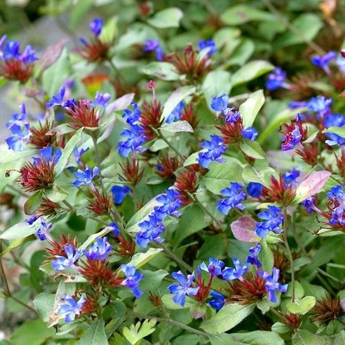 Olověnec pochází z Číny. Rostliny tvoří husté nízké porosty. Listy jsou během vegetačního období svěže zelené. S příchodem chladnějšího počasí na podzim se terminální listy zbarví do červena a objeví se jasně modré květy, které tvoří nádherný kontrast. Jedná se o nenáročnou trvalku na pěstování. Ideálně se jí daří na slunných stanovištích.