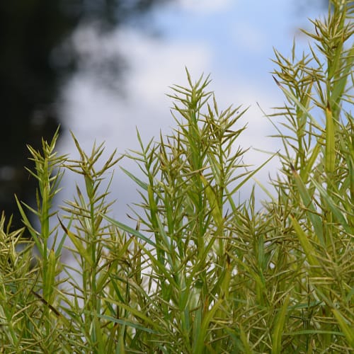 Tato vytrvalá ostřice je vysoká a vzpřímená. Lodyhy jsou světle zelené, poměrně silné, duté a téměř vždy nevětvené; díky úzkým hnědavým blanám se zdají být spojené. Jedná se o vodní nebo polovodní rostlinu jezer, potoků a rybníků ve Spojených státech a Kanadě.