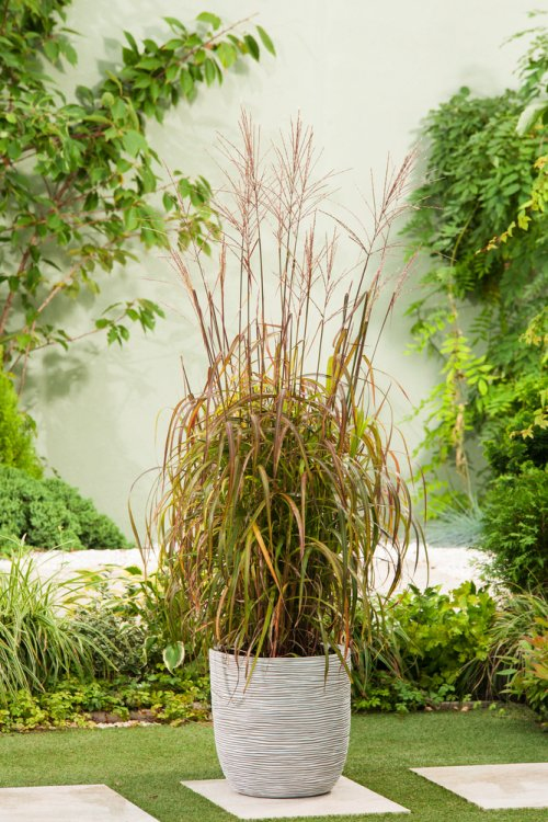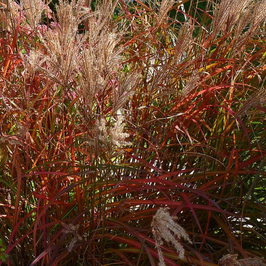 Okrasná tráva "Navajo" je vysoký kultivar čínské okrasné trávy, okrasné solitéry. Během sezóny má zelenofialové listy, které se na podzim zbarvují do oranžovočervených odstínů. Koncem léta rostliny začínají vyhazovat hnědobílé latovité trsy, které na rostlině vydrží až do jara.