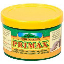 PRIMAX je směs vosků a pryskyřic přírodního původu, jejichž poměr byl dlouhodobě testován a upravován tak, aby bylo dosaženo vynikající kvality. Dobře chrání řezné rány před napadením škodlivými mikroorganismy a hmyzem. Má hnědou barvu, dobře se roztírá a voní po lesní pryskyřici. Štěpařský vosk se nanáší dřevěnou špachtlí na rány způsobené řezem, štěpením nebo mechanickým poškozením. Množství pomocného přípravku v balení: 150 ml.