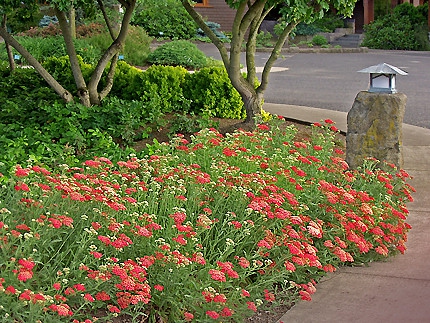 Jedná se o velmi statnou trvalku, která tvoří koberec tmavě zelených listů. Její květy jsou uspořádány do velkých trsů výrazné červené barvy, která neopadává.