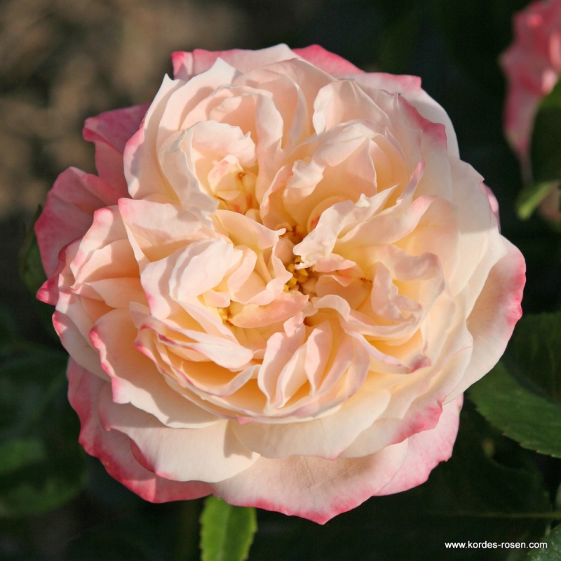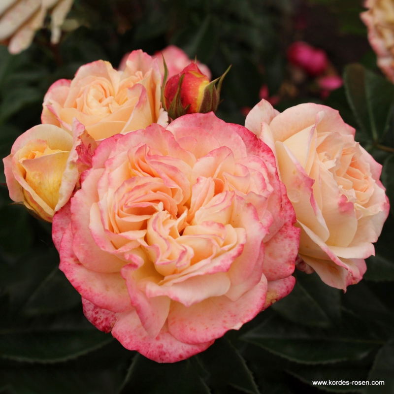 Růže "Concorde" s typicky nostalgickým tvarem květu má krémový, téměř meruňkově růžový odstín. Barva závisí na intenzitě slunečního světla. Je slabě aromatická, ale květy o průměru 9 cm kvetou bohatě, intenzivně a opakovaně. Pro svou vytrvalost v kvetení až do prvních mrazíků a použití k řezu do aranžmá je velmi oblíbená.