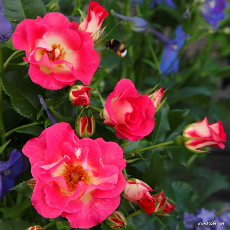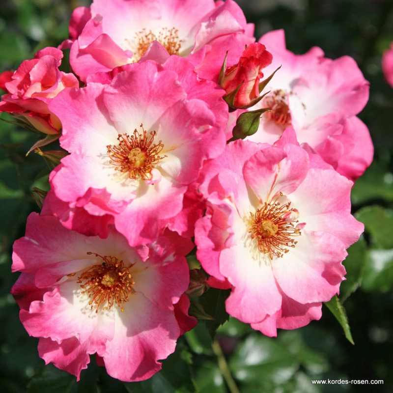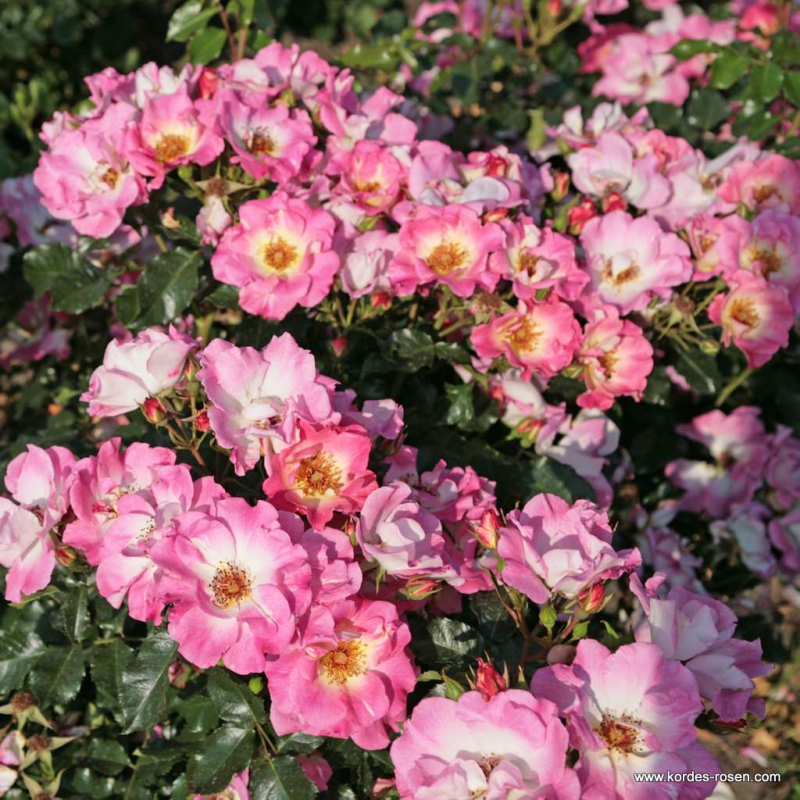 Tato nová mnohokvětá růže zaujme velikostí květů, které jsou jednoduché, ale krásně zbarvené od bílých až po růžové tóny na okrajích velkých květů. Středy květů jsou oranžovočervené a krásně splývají s růžovou barvou okvětních lístků.