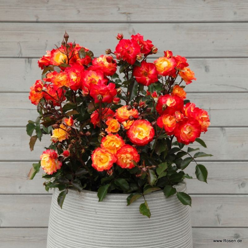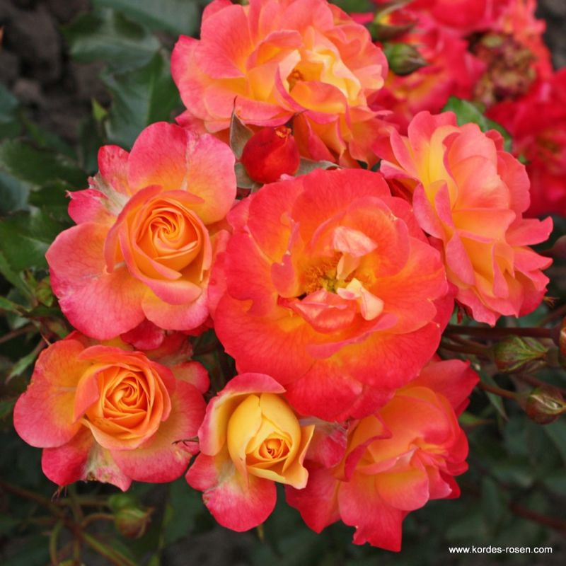 Firebird je nádherná mnohokvětá růže v kombinaci zářivě červené a oranžové barvy, která doslova vytváří dojem planoucího ohně. Růže Firebird od společnosti Kordes kvete opakovaně jako vzpřímený keř, dorůstá výšky 70 cm a šířky 50 cm. Vynikající odolnost vůči chorobám.