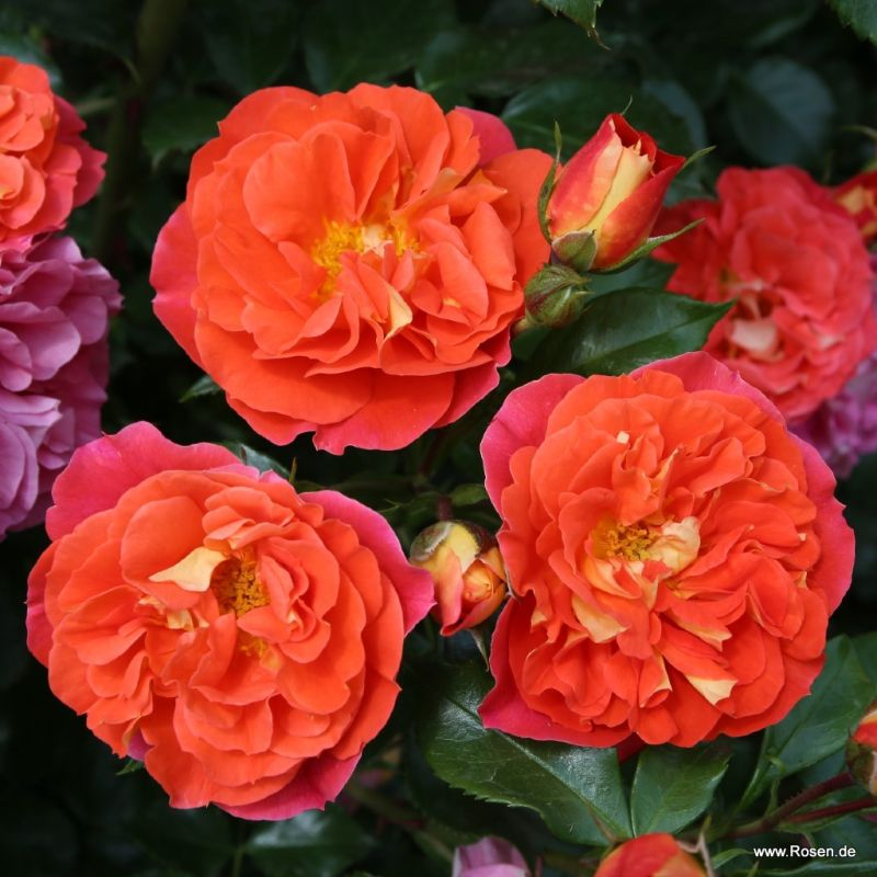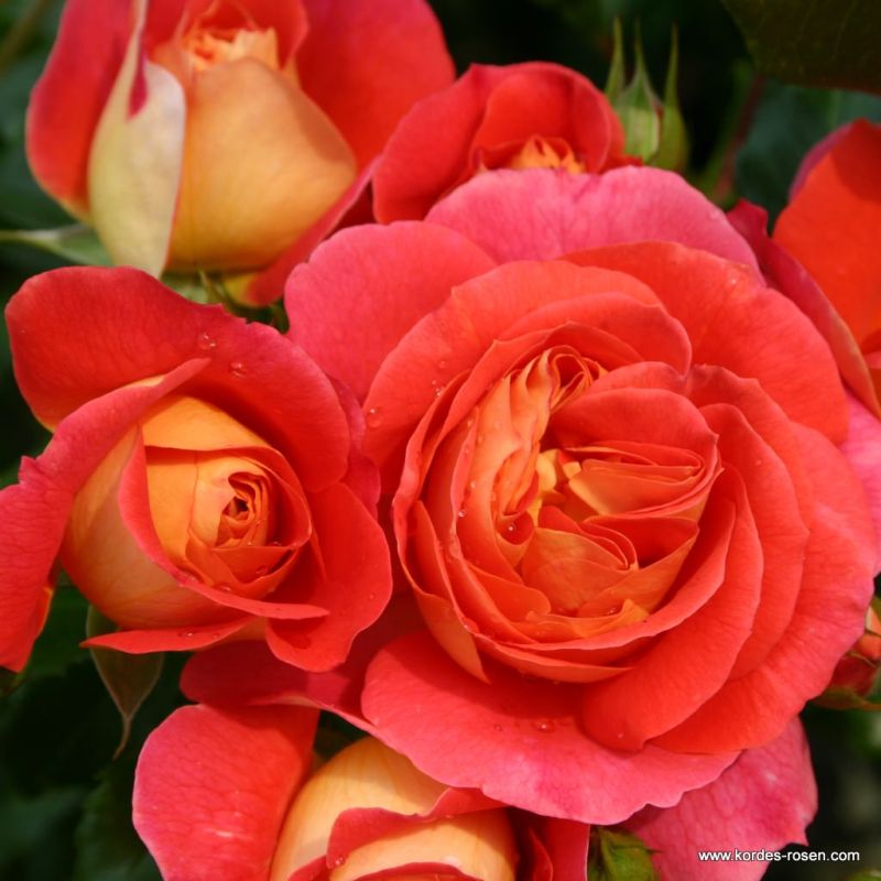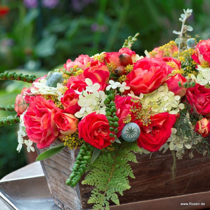 Nostalgická růže ´GEBRÜDER GRIMM´ s mnoha květy je zajímavá svým barevným efektem. Zbarvení spodní strany okvětních lístků v oranžových tónech harmonicky kontrastuje s krásnou zářivě červenou barvou na povrchu. Půvab pohádkově barevných květů dokonale doplňují lesklé zelené listy. Roste vzpřímeně do výšky asi 70 cm.