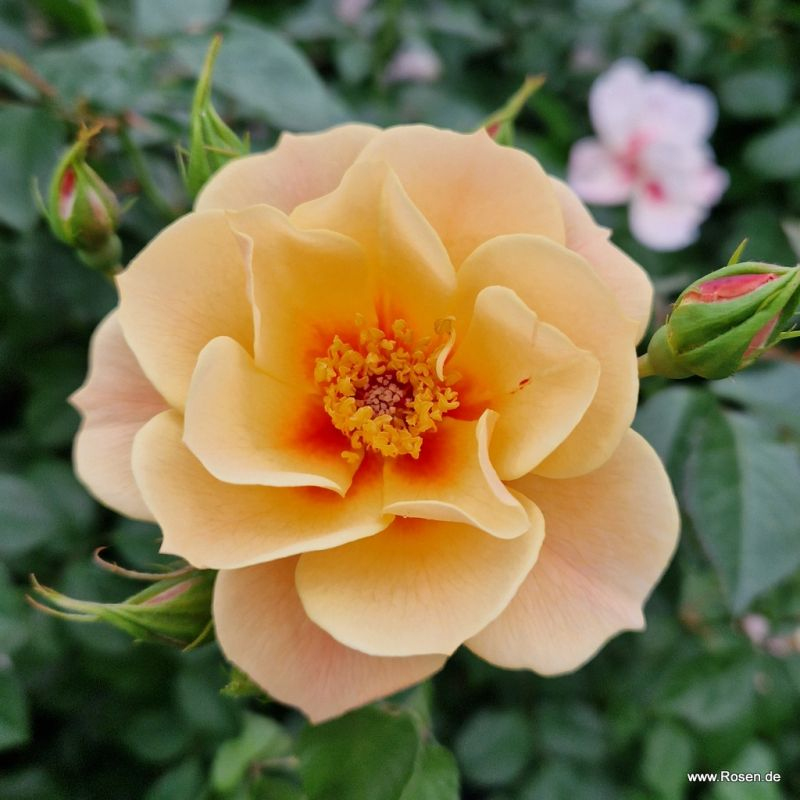 Vícekvětá růže See You in Apricot patří do kolekce hybridů perských růží, které upoutají pozornost svou výraznou barvou. Pyšní se nepřehlédnutelnou meruňkovou barvou s výraznými žlutými tyčinkami a sytě červeným středem. Je mimořádně zdravá, s lesklými, tmavě zelenými listy.