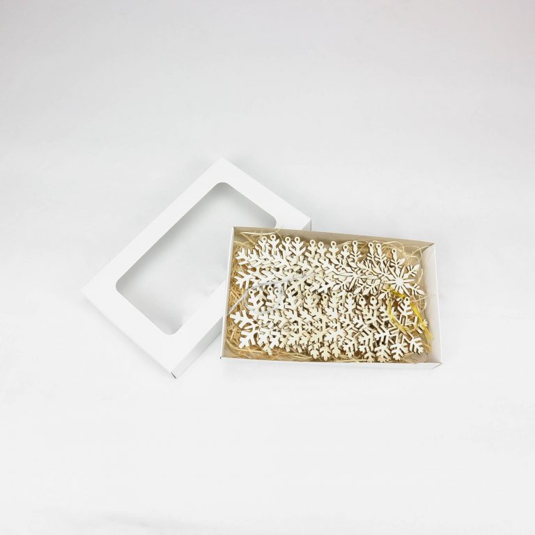 Sada se sněhovými vločkami - krabice s vánočními ozdobami
