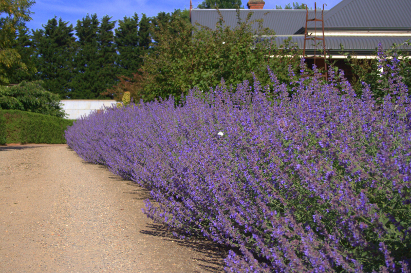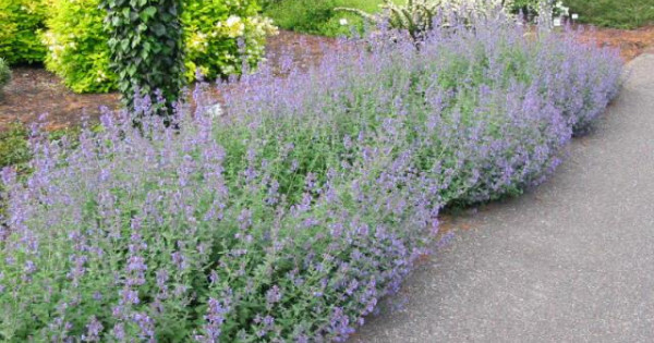 Nepeta grandiflora Six Hills Giant je vysoký kultivar kočkodana s šedozelenými listy. Od pozdního jara, téměř až do zámrazu, se na rostlinách objevují světle fialové květy, které jsou s oblibou požírány užitečným hmyzem.