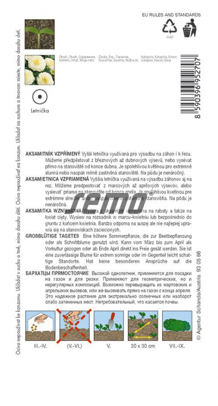 Prosté letničky vhodné zejména na záhony a k řezu. Ve váze vydrží 10 i více dní. Krémově bílé, velké plné květy, výška 45 cm.