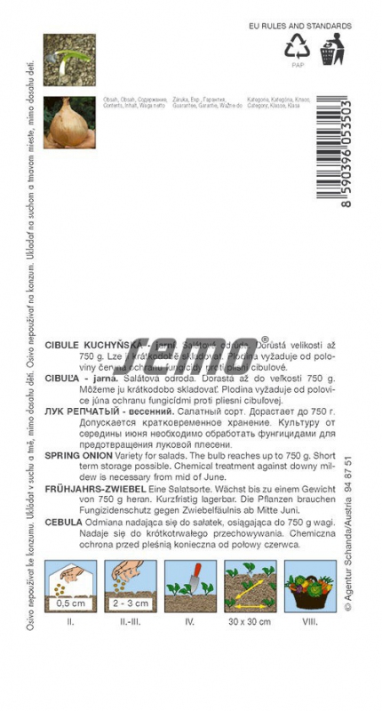 Odrůda obří žluté cibule. Při výsevu v únoru do parčíku a pozdějším přesazení na záhon dosahuje hmotnost cibule až 1 kg. Má malý počet suknic a velmi měkkou dužinu s menším množstvím silic, takže je vhodná do salátů a k přímé konzumaci. Vysoce výnosná odrůda, ale s velmi krátkou dobou skladovatelnosti.