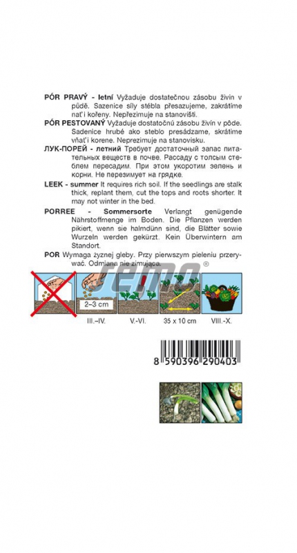 Polopozdní odrůda vhodná pro pozdně letní a časně podzimní sklizeň. Rostlina střední výšky. Listy polodiametrické, středně zelené, středně až silně přisedlé. Stonky středně dlouhé, středně velké až velké v průměru, se slabým prodloužením do cibule. Délka konzumní části 40-45 cm. Vegetační doba od výsevu je 155-165 dní. Výsev pro předpěstování od ledna do dubna, výsadba od dubna.