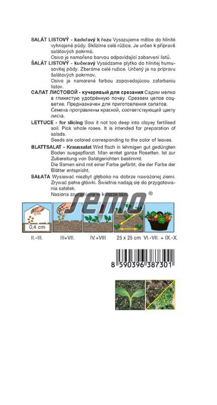 Poloodolná odrůda červeného listového salátu s kudrnatými, pevnými listy typu Red Fire, vhodná pro polní pěstování pro jarní a podzimní sklizeň. Listy jsou poloplané, velmi tmavě červené barvy, tenké se silným až velmi silným leskem, silně až velmi silně bublinaté, s drobnými bublinkami, mělce až středně zubatou čepelí se středně až hustě zvlněným okrajem. Netvoří hlavu, báze slabě až středně uzavřená. Odrůda odolná proti odlistění za dlouhého dne. Vynikající jako ozdoba salátových mís a pokrmů.