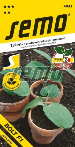 Okurky a melouny k roubování v květináči Bolt F1 - nová podnož vyšlechtěná speciálně pro roubování okurek a melounů - mezidruhový kříženec Cucurbita maxima x C. moschata typ Tetsukabuto. Sazenice této podnože rostou velmi rovnoměrně a zároveň mají silný masitý stonek, což jsou zásadní faktory usnadňující roubování. Podnož Bolt je vysoce tolerantní k vadnutí způsobenému houbami Fusarium, Pythium a Rhizoctonium. Roubované rostliny mají silnější růstový habitus, vyšší násadu plodů, odolnost vůči chladu nebo jiným stresům a výrazně delší životnost než pravokořenné okurky nebo melouny.
