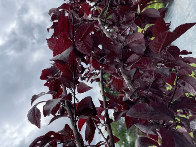 Černá třešeň je ovocný strom, který vytváří kulovitou nebo vejčitou korunu. Díky dekorativnímu zbarvení listů a toleranci ke znečištěnému ovzduší je vhodná i jako alejový strom nebo solitera. Listy jsou červené, v létě purpurové, oválné s pilovitým okrajem. Na jaře je celý strom pokrytý drobnými růžovými květy. Pokud je strom opylován, mohou na konci léta dozrát kulaté, jedlé, šťavnaté, sladké červené plody s malou peckou uprostřed, velké 2 cm.