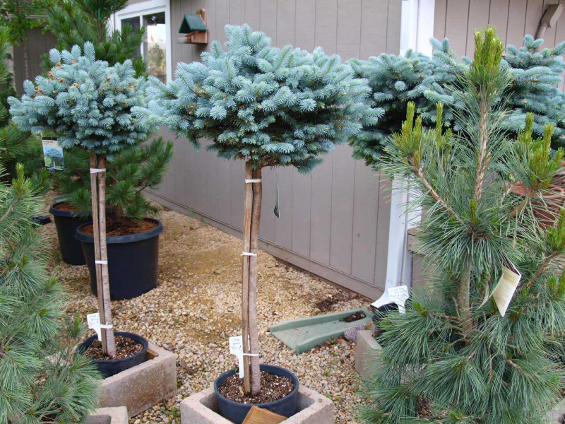 Pomaleji rostoucí smrk, zajímavý svými modře zbarvenými jehlicemi. Jeho koruna přirozeně roste do kulovitého tvaru. Díky svému pomalému růstu je vhodný do větších skalek.