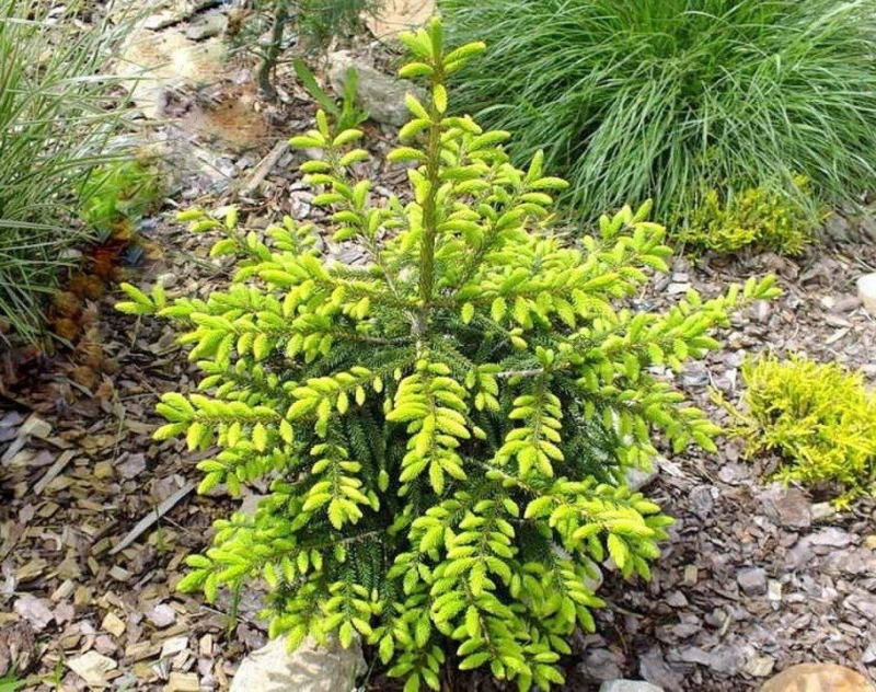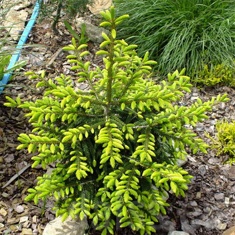Je široce kuželovitý, cípy jsou jemné, krátké, při rašení žluté, později tmavnoucí do zelena. Upřednostňuje vlhké, slunné stanoviště a dobře propustnou půdu. Tento zakrslý smrk se nejlépe hodí jako solitera na malých plochách, v předzahrádkách nebo jako dominanta ve skalkách či vřesovištích.