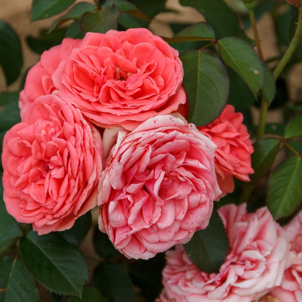 Květy jsou krásně plné a husté ve starorůžové barvě s romantickým vzhledem. Keř bohatě kvete.