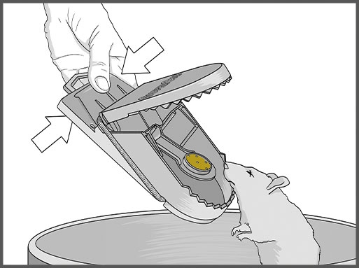 3. Chycenou krysu lze rychle a snadno odstranit, aniž byste se jí dotkli, stisknutím klapky . Past SuperCat je pak okamžitě připravena k dalšímu použití.