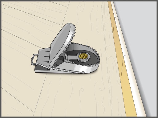 2. Nastavte past. Protože krysy jen zřídka procházejí otevřenými prostory, měli byste past umístit otevřenou stranou ke zdi . Past na krysy SuperCat pravidelně kontrolujte.